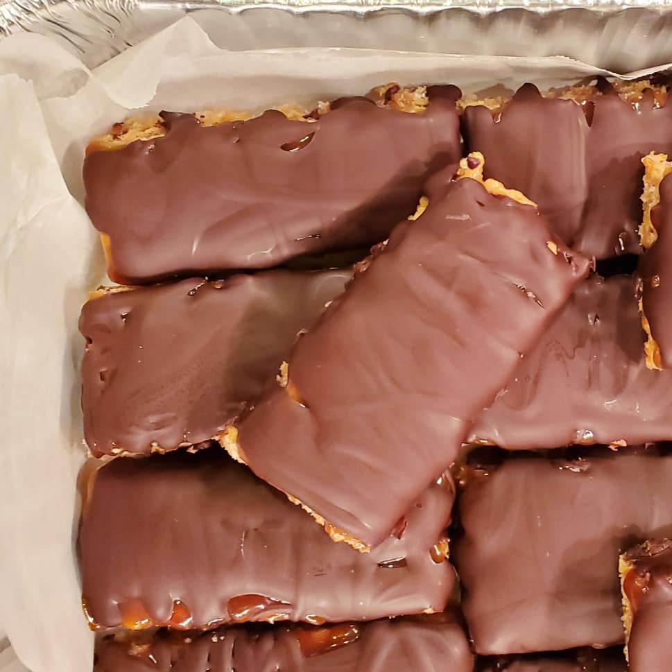 I’m two treats in to the Friendsgiving Bakeathon! This post focuses on a specific request for my homemade “Whatchamacallit” bars.